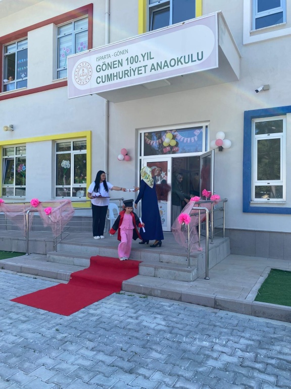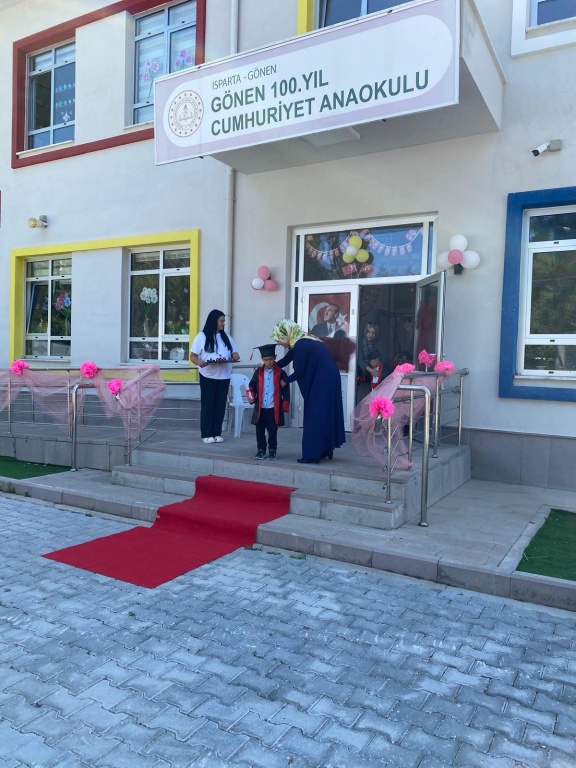Gönen 100. Yıl Cumhuriyet Anaokulu 5 Yaş sınıfları olarak hazırlanan mezuniyet töreni renkli görüntülere sahne oldu. 5 Yaş sınıf öğretmenlerimiz Tuba UYSAL ve Emine ÖNAL tarafından hazırlanan program Okul Müdürümüz İsmail Onur ÖZCAN'ın konuşmasıyla başladı. Çocuklara, öğretmenleri tarafından, Mezuniyet Belgeleri verilmesi ardından kep atma töreni yapıldı. Ardından okul bahçemizde hazırlanan kahvaltı etkinliği ile velilerimiz ve çocuklarımız keyifli zaman geçirdiler.